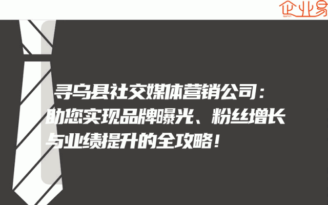 - 寻乌县社交媒体营销公司:助您实现品牌曝光、粉丝增长与业绩提升的全攻略!