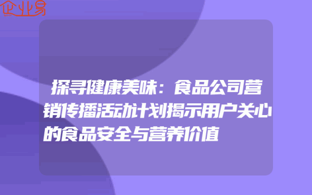 - 探寻健康美味:食品公司营销传播活动计划揭示用户关心的食品安全与营养价值