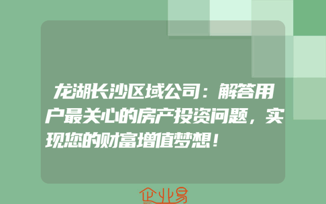 - 龙湖长沙区域公司:解答用户最关心的房产投资问题,实现您的财富增值梦想!