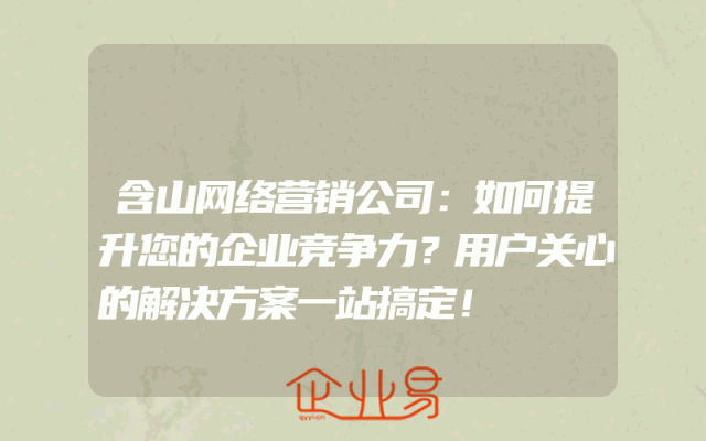 - 含山网络营销公司:如何提升您的企业竞争力?用户关心的解决方案一站搞定!