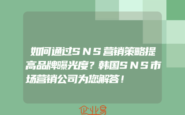 - 如何通过SNS营销策略提高品牌曝光度?韩国SNS市场营销公司为您解答!