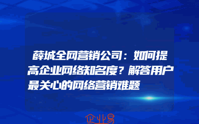 - 薛城全网营销公司:如何提高企业网络知名度?解答用户最关心的网络营销难题