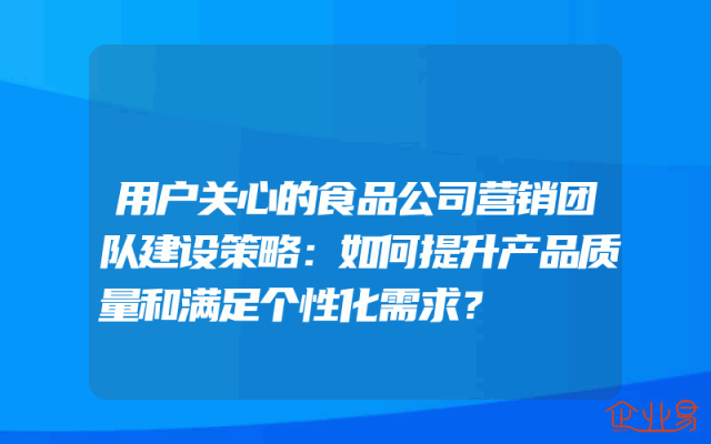 - 用户关心的食品公司营销团队建设策略:如何提升产品质量和满足个性化需求?