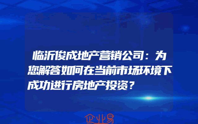 - 临沂俊成地产营销公司:为您解答如何在当前市场环境下成功进行房地产投资?