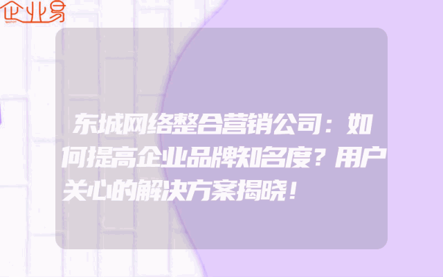 - 东城网络整合营销公司:如何提高企业品牌知名度?用户关心的解决方案揭晓!