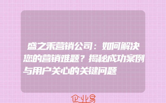 - 盛之禾营销公司:如何解决您的营销难题?揭秘成功案例与用户关心的关键问题