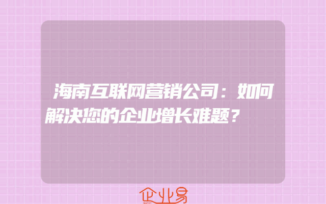 - 海南互联网营销公司:如何解决您的企业增长难题?