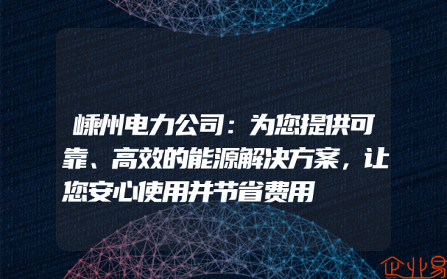 - 嵊州电力公司:为您提供可靠、高效的能源解决方案,让您安心使用并节省费用