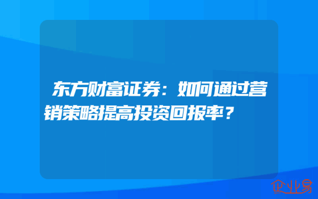- 东方财富证券:如何通过营销策略提高投资回报率?