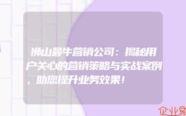 - 狮山最牛营销公司:揭秘用户关心的营销策略与实战案例,助您提升业务效果!