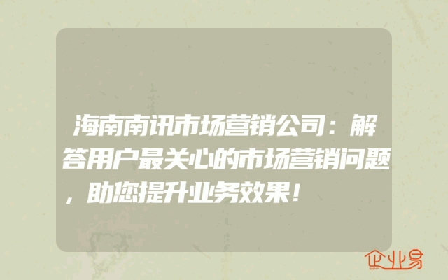 - 海南南讯市场营销公司:解答用户最关心的市场营销问题,助您提升业务效果!