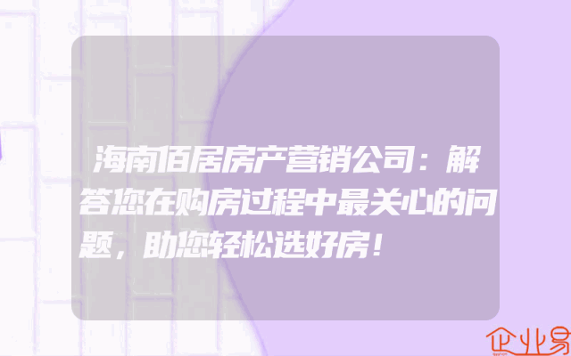 - 海南佰居房产营销公司:解答您在购房过程中最关心的问题,助您轻松选好房!