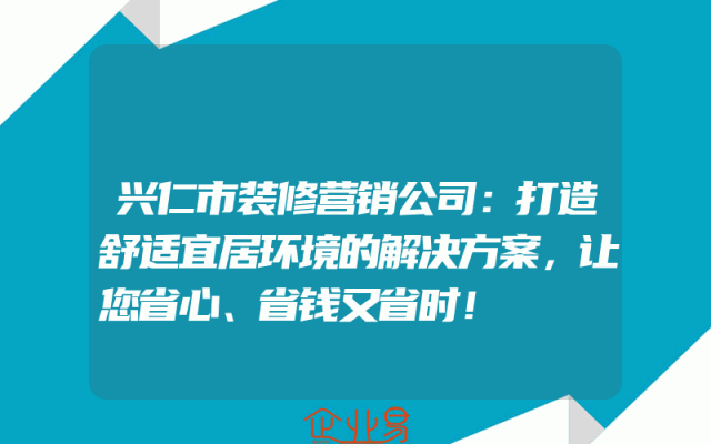 - 兴仁市装修营销公司:打造舒适宜居环境的解决方案,让您省心、省钱又省时!