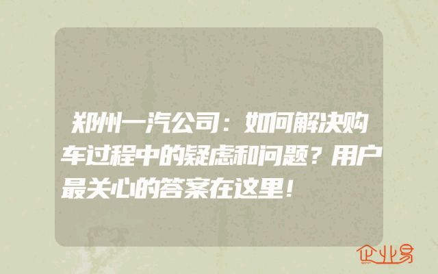 - 郑州一汽公司:如何解决购车过程中的疑虑和问题?用户最关心的答案在这里!