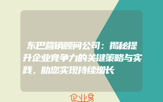 - 东巴营销顾问公司:揭秘提升企业竞争力的关键策略与实践,助您实现持续增长