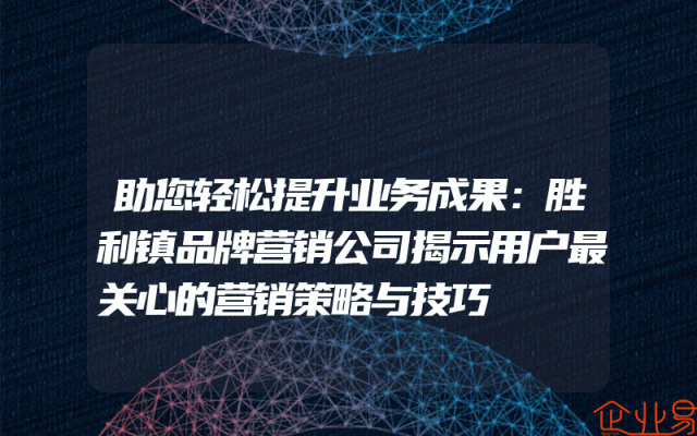 - 助您轻松提升业务成果:胜利镇品牌营销公司揭示用户最关心的营销策略与技巧