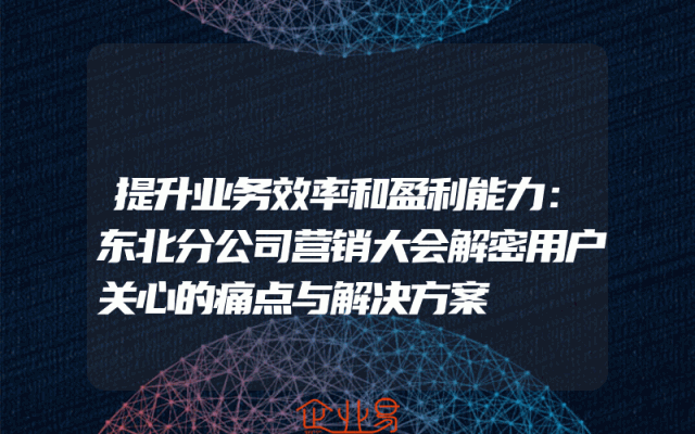 - 提升业务效率和盈利能力:东北分公司营销大会解密用户关心的痛点与解决方案