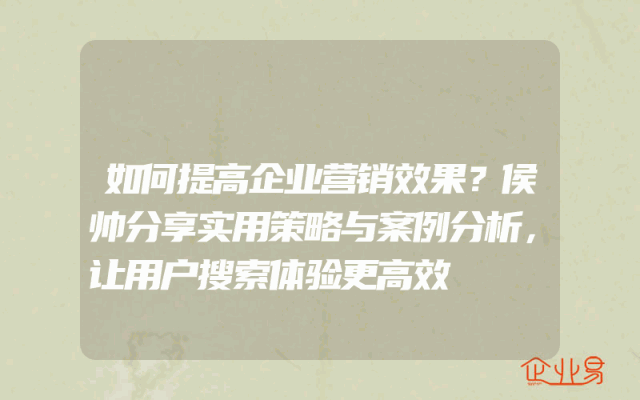 - 如何提高企业营销效果?侯帅分享实用策略与案例分析,让用户搜索体验更高效