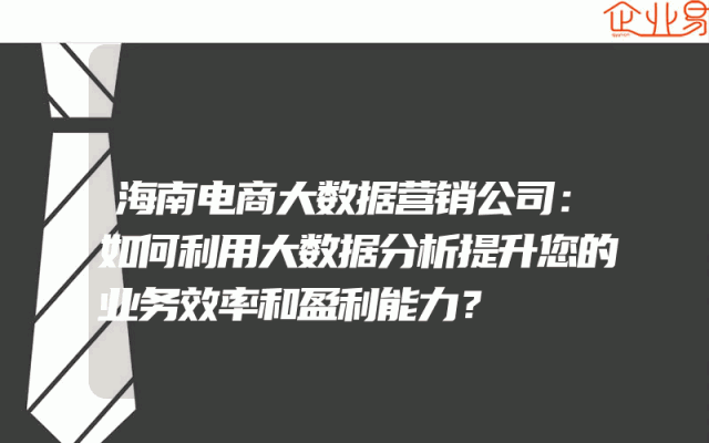 - 海南电商大数据营销公司:如何利用大数据分析提升您的业务效率和盈利能力?