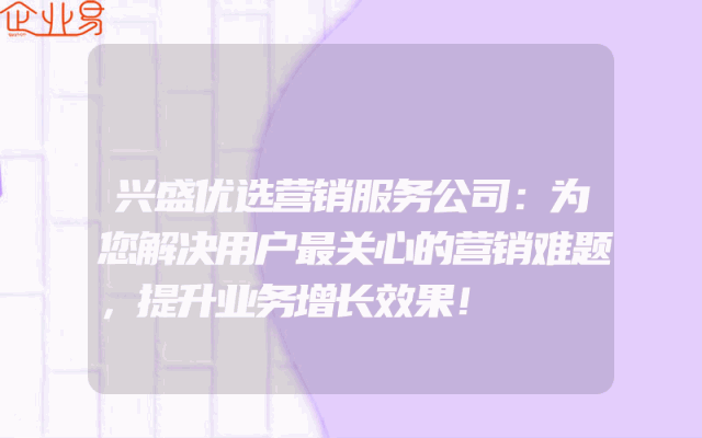 - 兴盛优选营销服务公司:为您解决用户最关心的营销难题,提升业务增长效果!