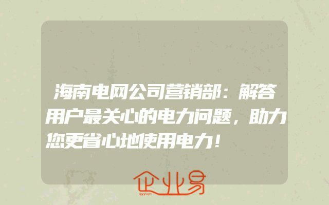 - 海南电网公司营销部:解答用户最关心的电力问题,助力您更省心地使用电力!