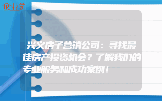 - 兴义房子营销公司:寻找最佳房产投资机会?了解我们的专业服务和成功案例!