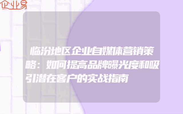 - 临汾地区企业自媒体营销策略:如何提高品牌曝光度和吸引潜在客户的实战指南