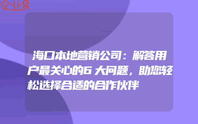 - 海口本地营销公司:解答用户最关心的6大问题,助您轻松选择合适的合作伙伴