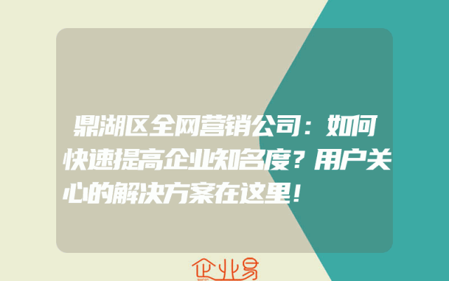 - 鼎湖区全网营销公司:如何快速提高企业知名度?用户关心的解决方案在这里!