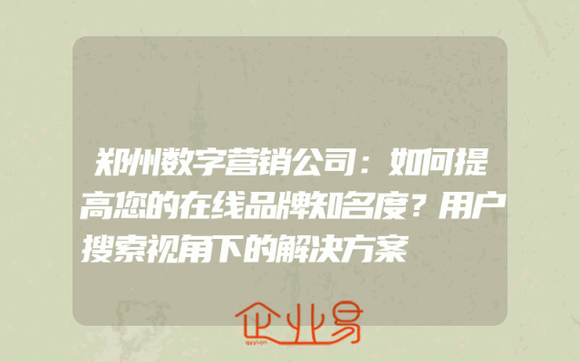 - 郑州数字营销公司:如何提高您的在线品牌知名度?用户搜索视角下的解决方案