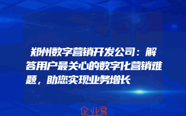 - 郑州数字营销开发公司:解答用户最关心的数字化营销难题,助您实现业务增长