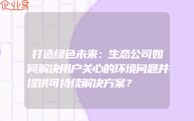 - 打造绿色未来:生态公司如何解决用户关心的环境问题并提供可持续解决方案?