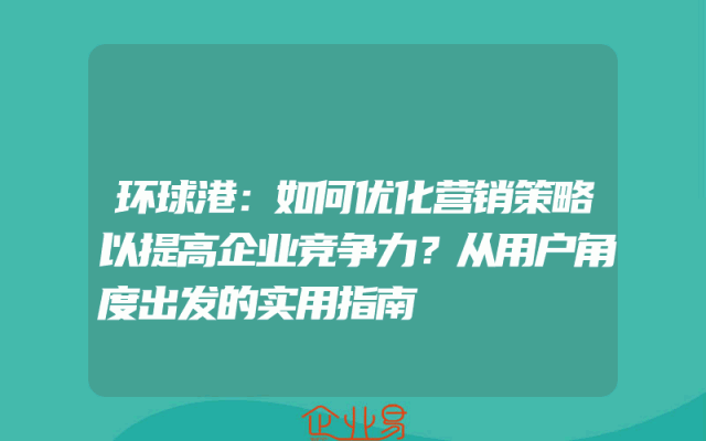 - 环球港:如何优化营销策略以提高企业竞争力?从用户角度出发的实用指南