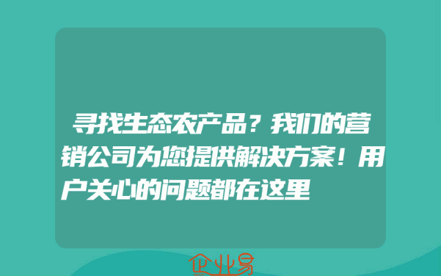 - 寻找生态农产品?我们的营销公司为您提供解决方案!用户关心的问题都在这里