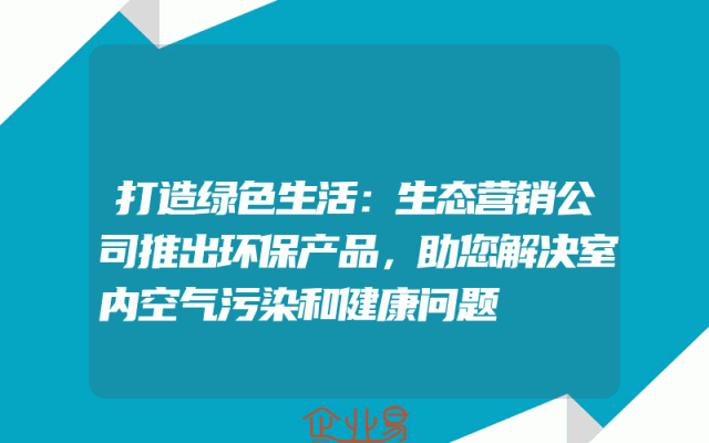 - 打造绿色生活:生态营销公司推出环保产品,助您解决室内空气污染和健康问题