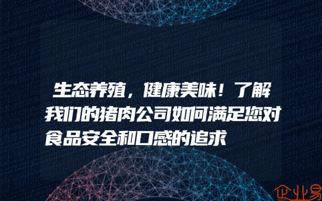 - 生态养殖,健康美味!了解我们的猪肉公司如何满足您对食品安全和口感的追求