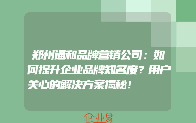 - 郑州通和品牌营销公司:如何提升企业品牌知名度?用户关心的解决方案揭秘!