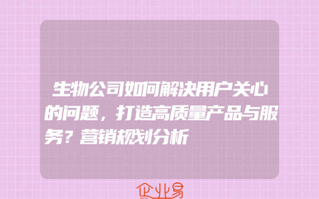 - 生物公司如何解决用户关心的问题,打造高质量产品与服务?营销规划分析