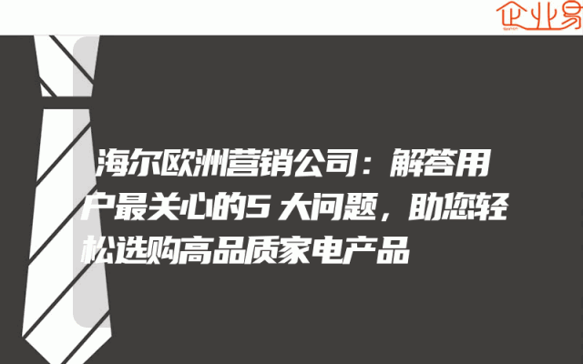 - 海尔欧洲营销公司:解答用户最关心的5大问题,助您轻松选购高品质家电产品