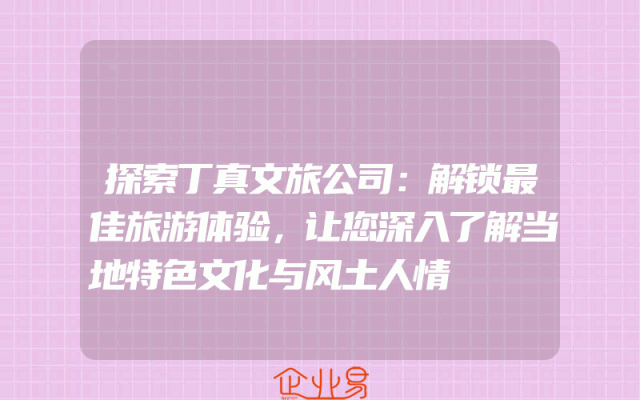 - 探索丁真文旅公司:解锁最佳旅游体验,让您深入了解当地特色文化与风土人情