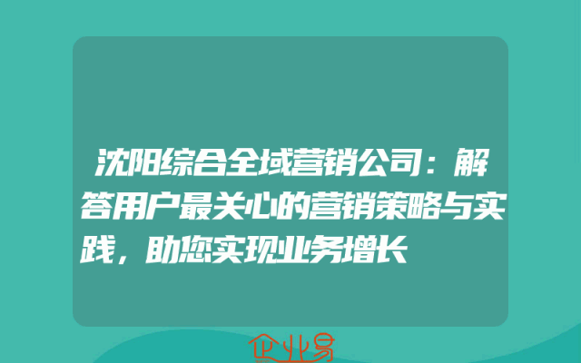 - 沈阳综合全域营销公司:解答用户最关心的营销策略与实践,助您实现业务增长