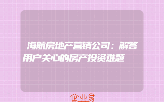 - 海航房地产营销公司:解答用户关心的房产投资难题