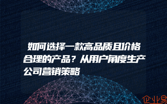 - 如何选择一款高品质且价格合理的产品?从用户角度生产公司营销策略