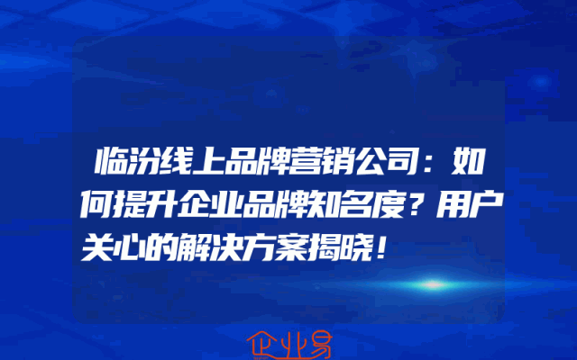 - 临汾线上品牌营销公司:如何提升企业品牌知名度?用户关心的解决方案揭晓!
