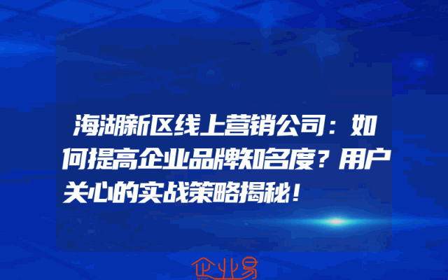 - 海湖新区线上营销公司:如何提高企业品牌知名度?用户关心的实战策略揭秘!