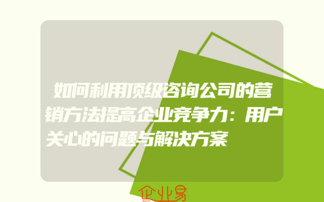 - 如何利用顶级咨询公司的营销方法提高企业竞争力:用户关心的问题与解决方案