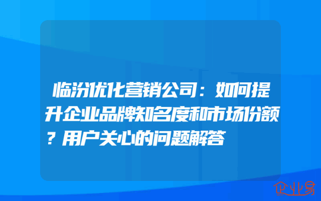 - 临汾优化营销公司:如何提升企业品牌知名度和市场份额?用户关心的问题解答