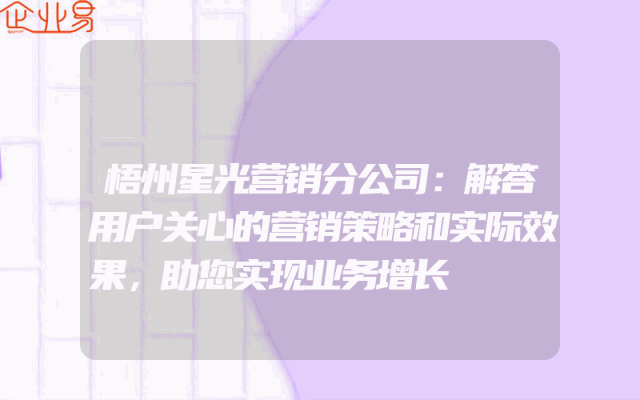 - 梧州星光营销分公司:解答用户关心的营销策略和实际效果,助您实现业务增长