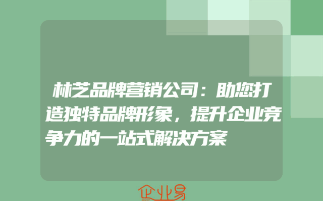 - 林芝品牌营销公司:助您打造独特品牌形象,提升企业竞争力的一站式解决方案