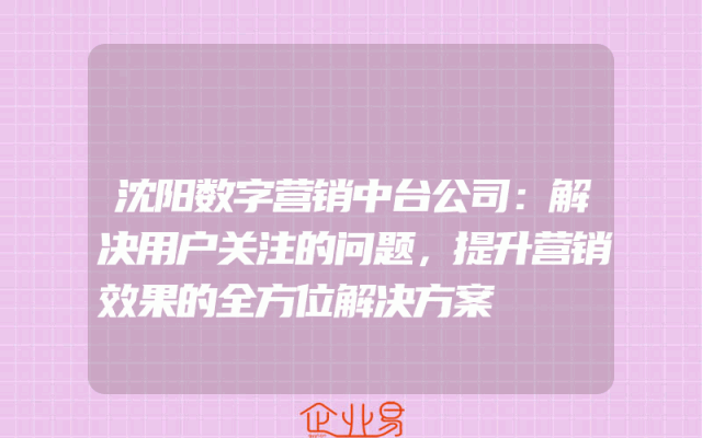 - 沈阳数字营销中台公司:解决用户关注的问题,提升营销效果的全方位解决方案